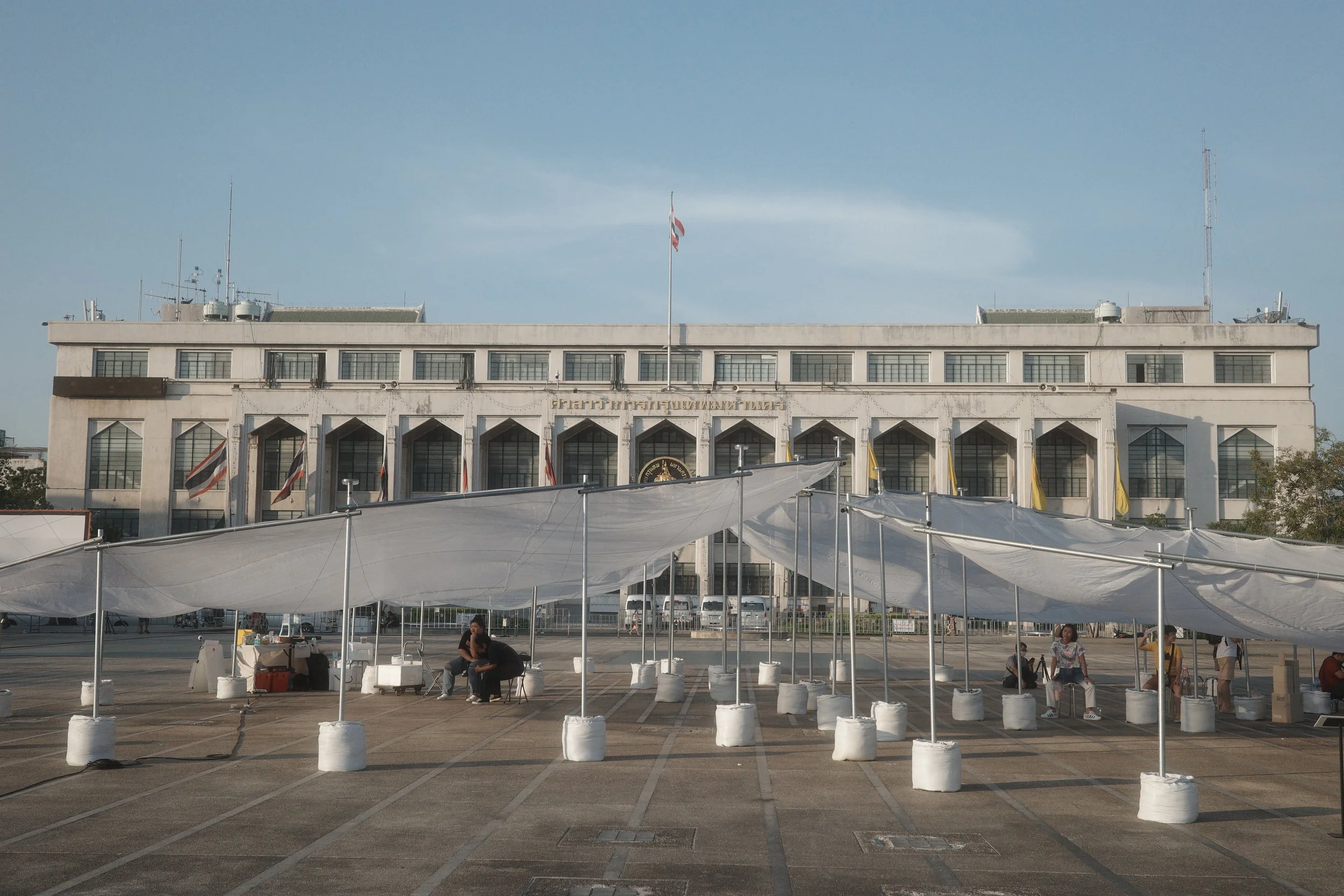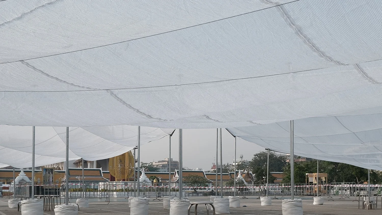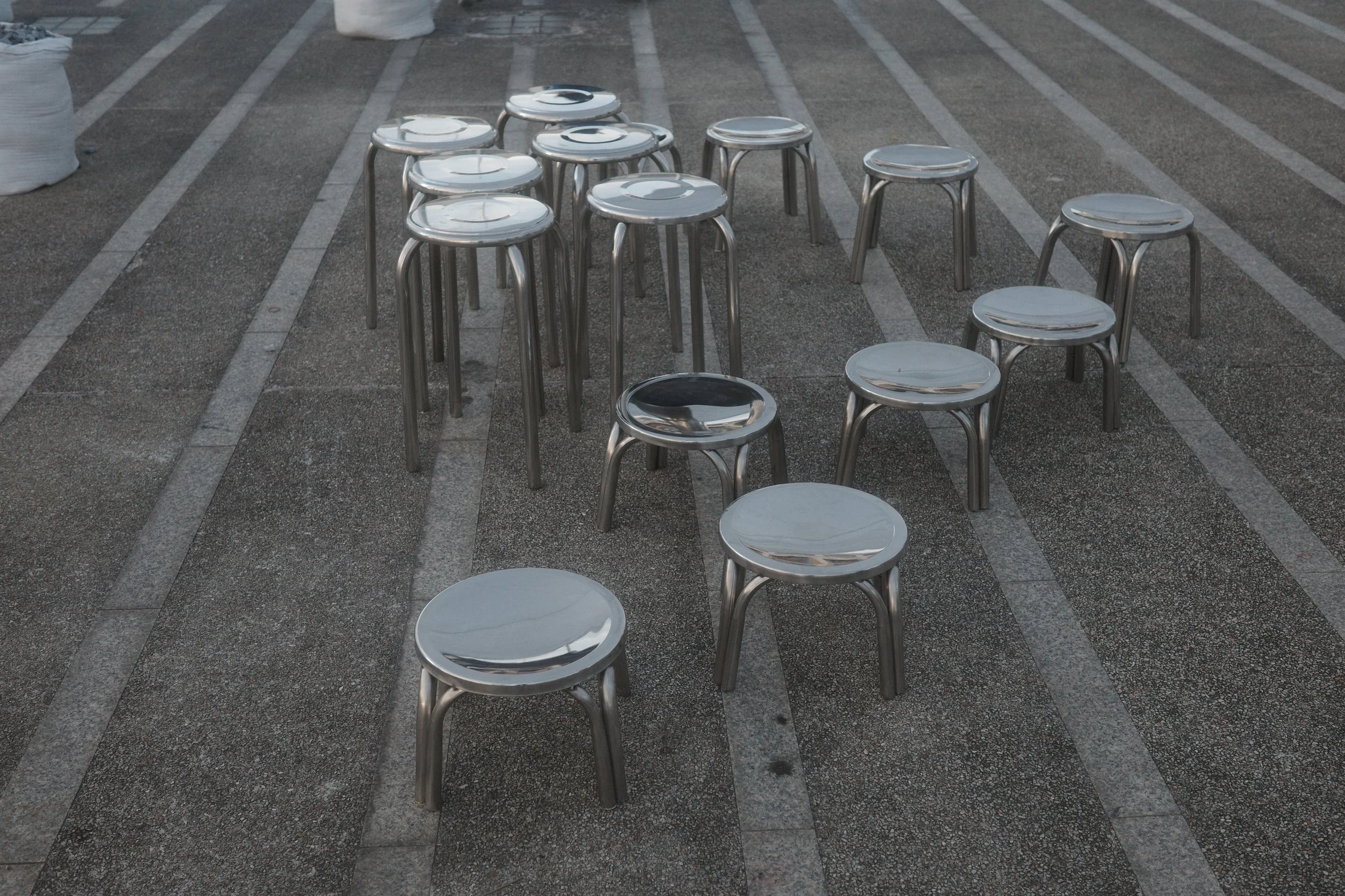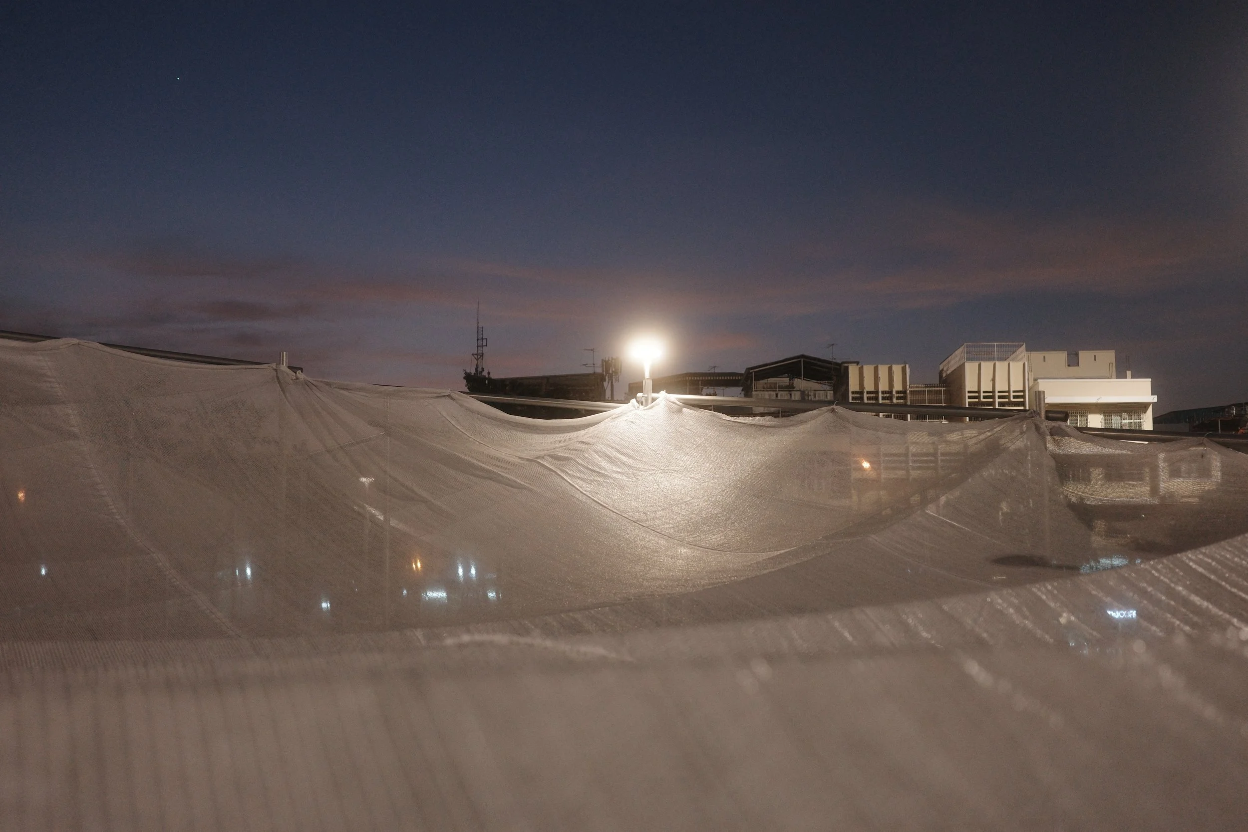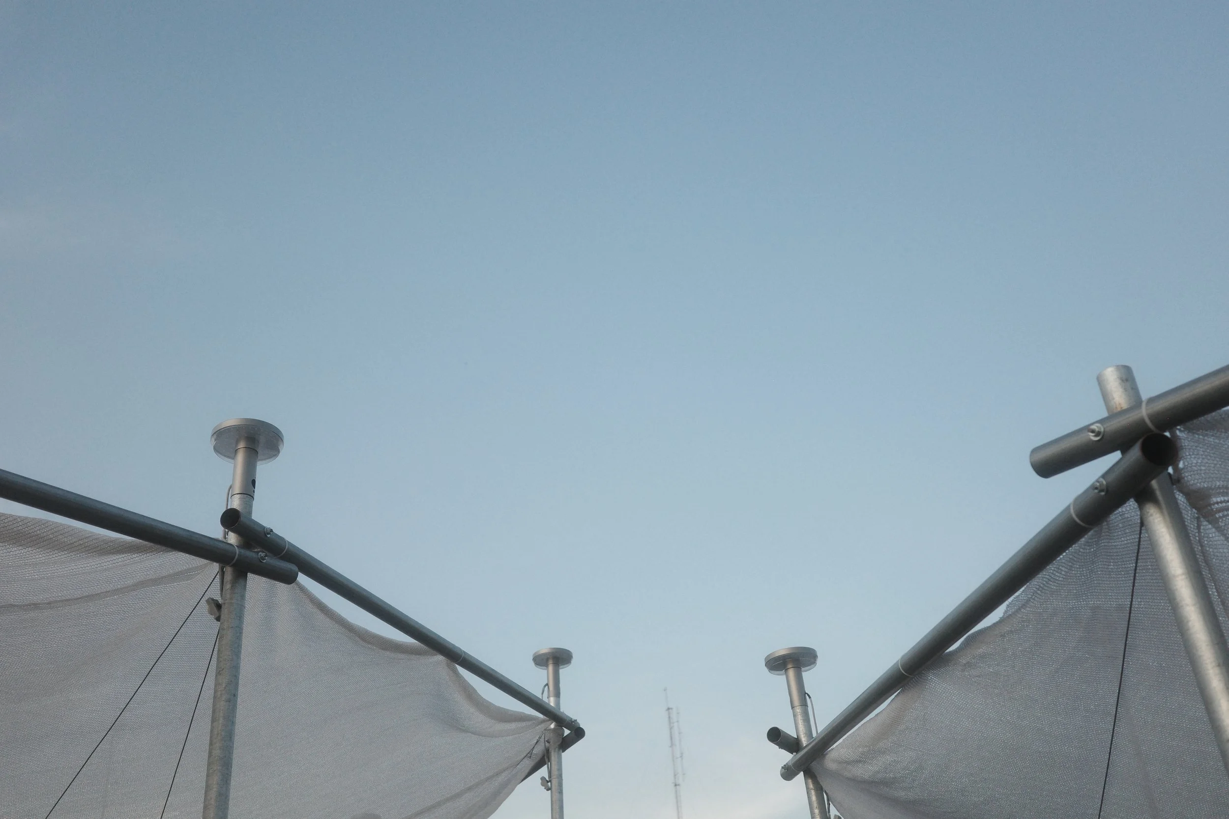 The cluster of circular lightweight formations are arranged in a clover-like form creating one large enclosure. Underneath the sloping roofs are shaded and permeable spaces welcoming light, air, movement and people. Diverse spatial conditions and connections are created by the irregular form and differing heights. After the event, each of the units can be relocated or re-configured for various uses. By giving form to things taken from the everyday, "Clover" is a playful exploration into self-generating architecture.
